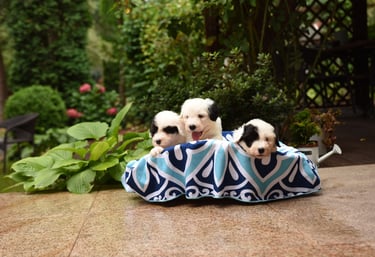 Jeśli chodzi o Szczenięta to miewamy miot zazwyczaj 1-2 razy w roku, jednak jak już się pojawią, to przykładamy szczególną wagę do wyboru domu, w którym mają zamieszkać oraz nowych opiekunów. Potencjalni nowi, właściciele pojawiają się jeszcze zanim suka jest w ciąży, a my poznajemy się nawzajem, po to by nasze „dzieci” trafiły w naprawdę doskonałe ręce. Mioty u Owczarków Staroangielskich z reguły średnio kształtują się od 5 – 10 szczeniaków. To jest zawsze wyjątkowy czas w naszym domu. Maluchy są zawsze wypieszczone przez nas, nasze dzieci no i oczywiście swoją mamę. One też są suplementowane, by potem dojrzewać i wyrosnąć na wybitnych przedstawicieli rasy Owczarka Staroangielskiego.